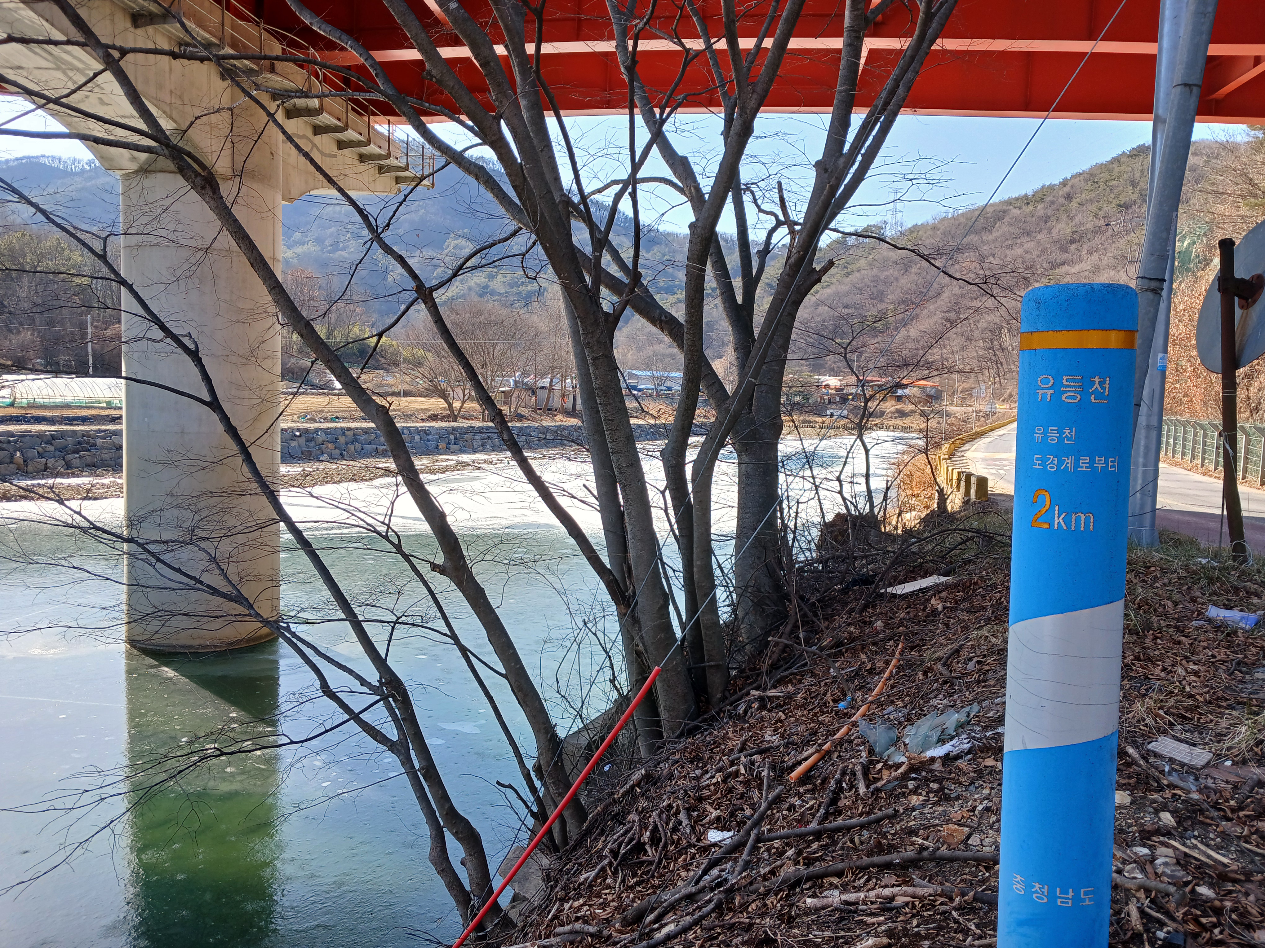 -부대 앞(14:04)-대둔산로 굴다리(14:09)-지량리(14:17)-리코 다육-둥구나무집(14:32)-동구들로 징검다리